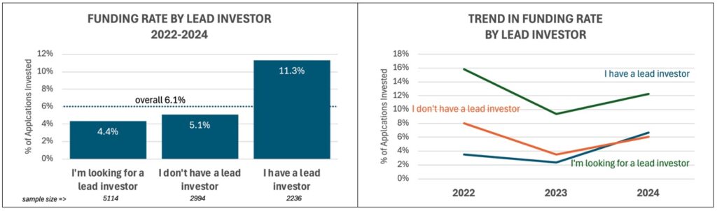 - Funding rates are higher when there is validation in terms of the presence of a lead investor, the amount of commitments at the time of application, and the existence of funding in prior rounds.