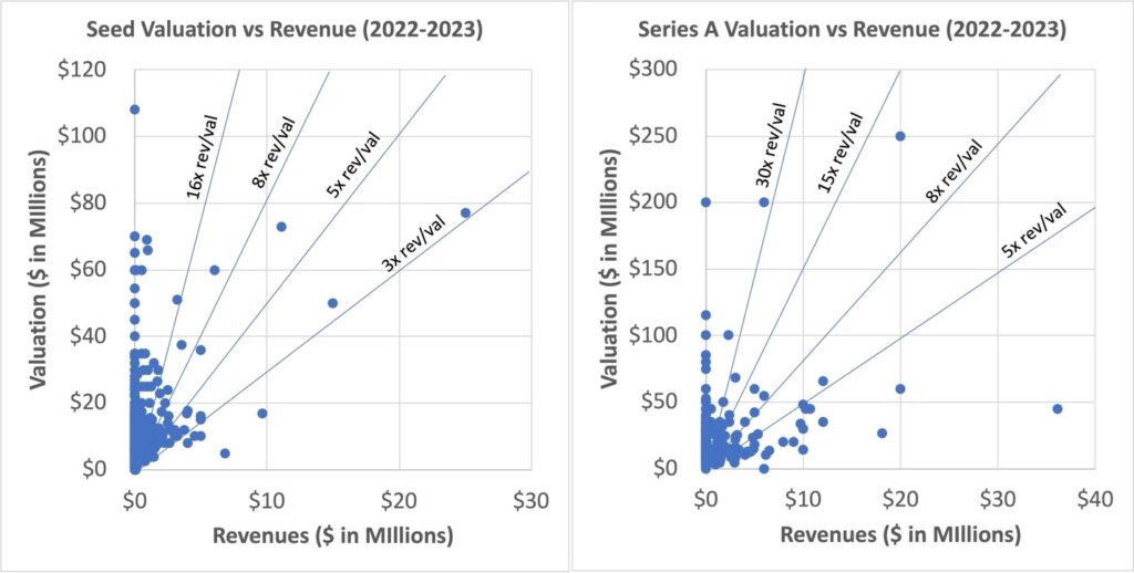 Figure 4: Seed & Series A Valuations vs Revenue (2022-2023)