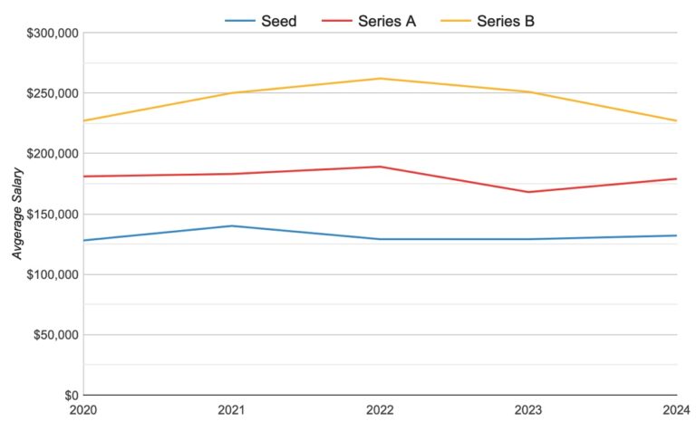 - Startup Salaries are largely flat in nominal terms across Seed, Series A and Series B