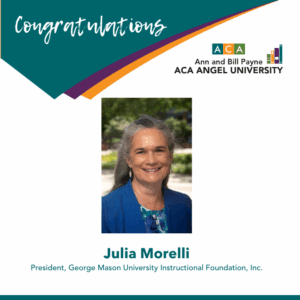 The Angel Capital Association (ACA) is proud to announce Julia Morelli, President of George Mason University Instructional Foundation, Inc. and Holistic Solutions, Inc., as the recipient of the Ann & Bill Payne ACA Angel University Scholarship, awarded this fall to as a rising leader in entrepreneurial education.