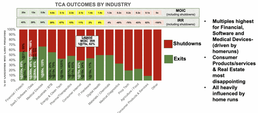 Source: Analysis of all 320 TCA Venture Group portfolio companies with Outcomes (Exits or Shutdowns) 1997-2025